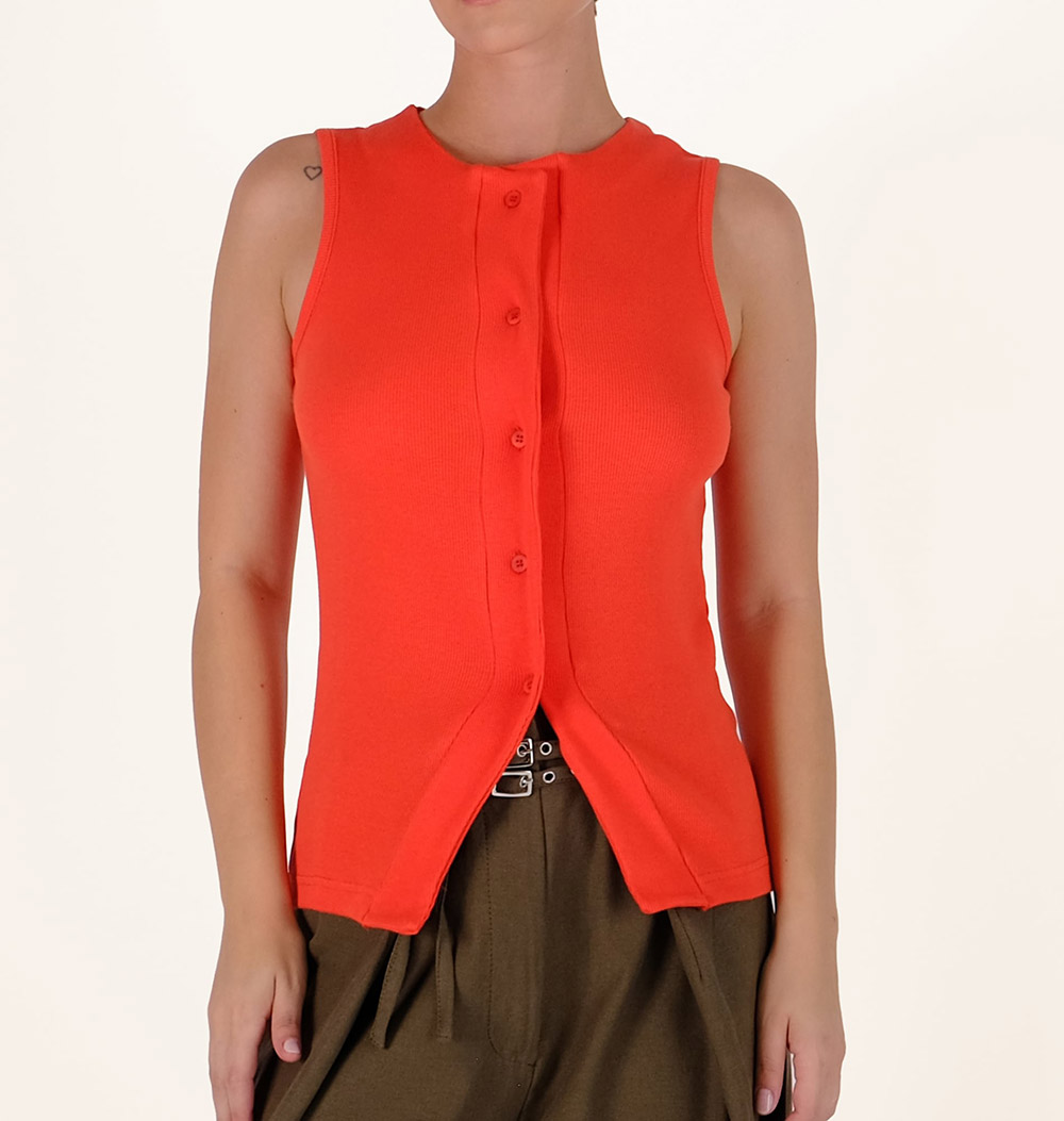 Sleeveless, rib vest - top / Front buttons closure / Slim fit