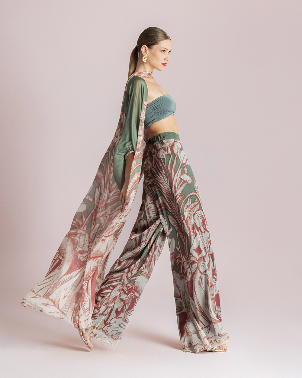 Printed, wide-leg pants / Elasticated waistband at the back / Side zip closure