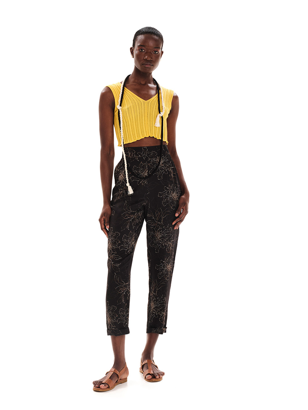 Sleeveless, knit, cropped top with V-neckline both in the front and back