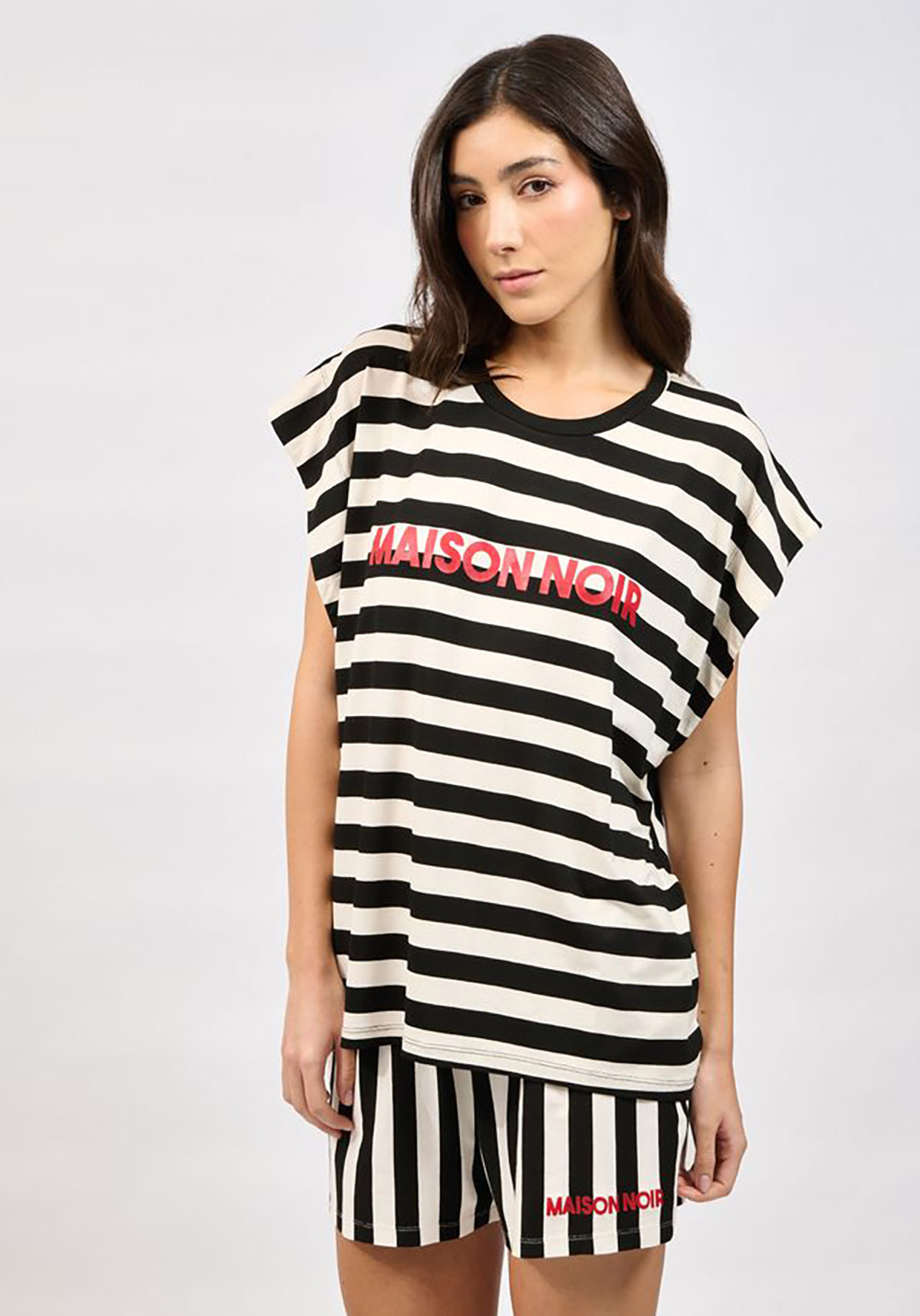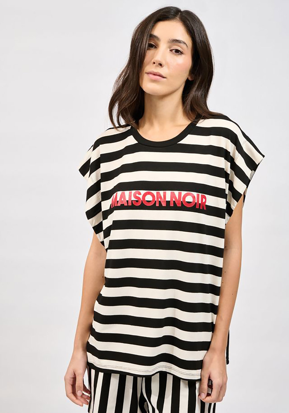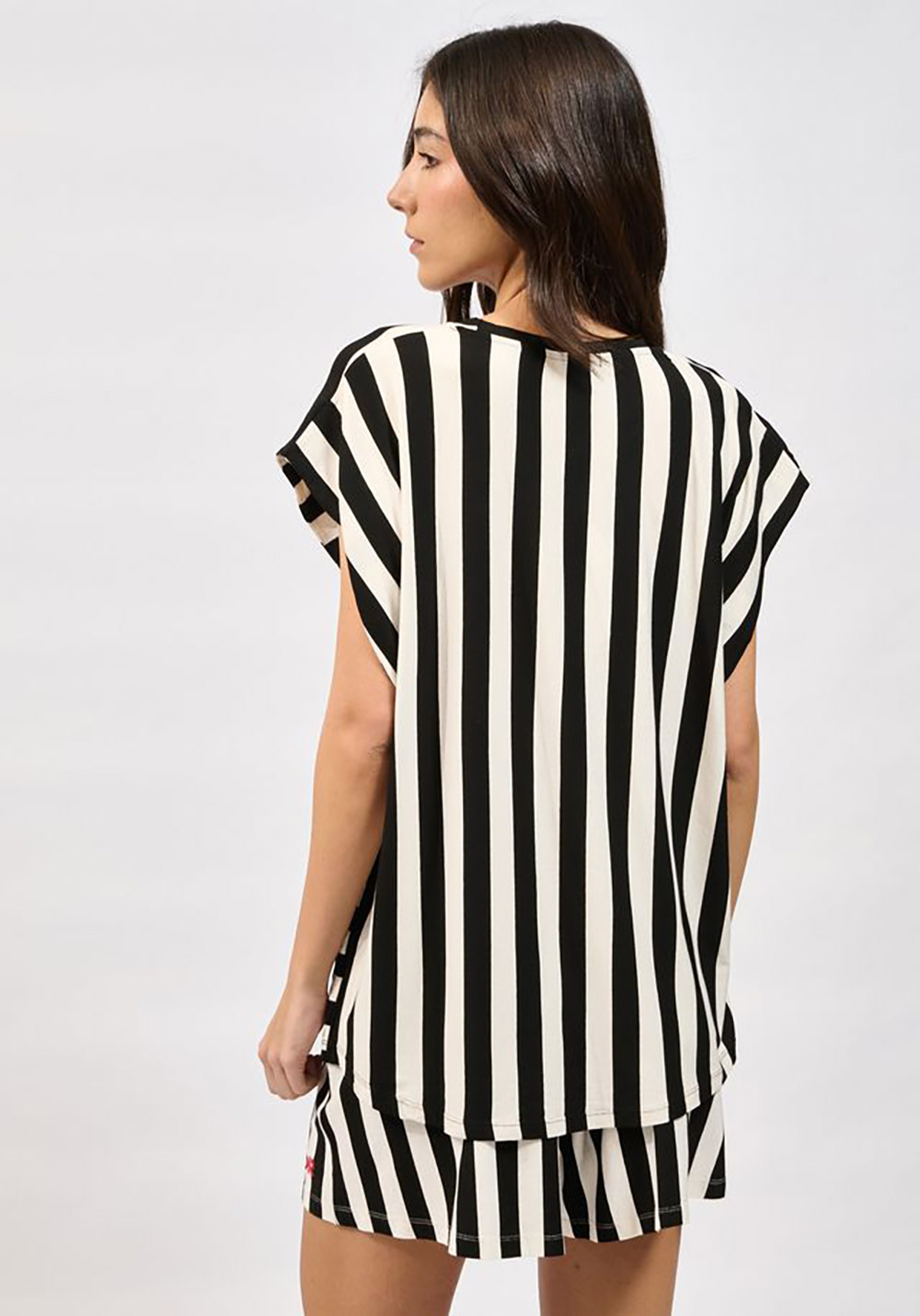 Oversized top with vertical stripes / Round neckline / Slightly extended sleeves