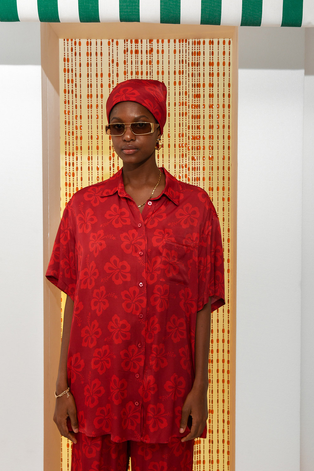 Short-sleeve, printed shirt / Oversized fit / Chest pocket / Front button closure