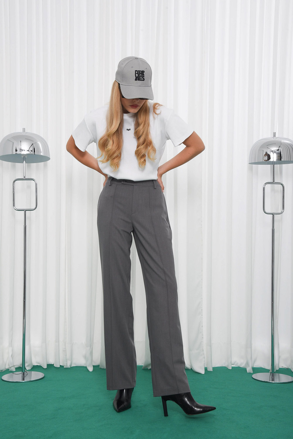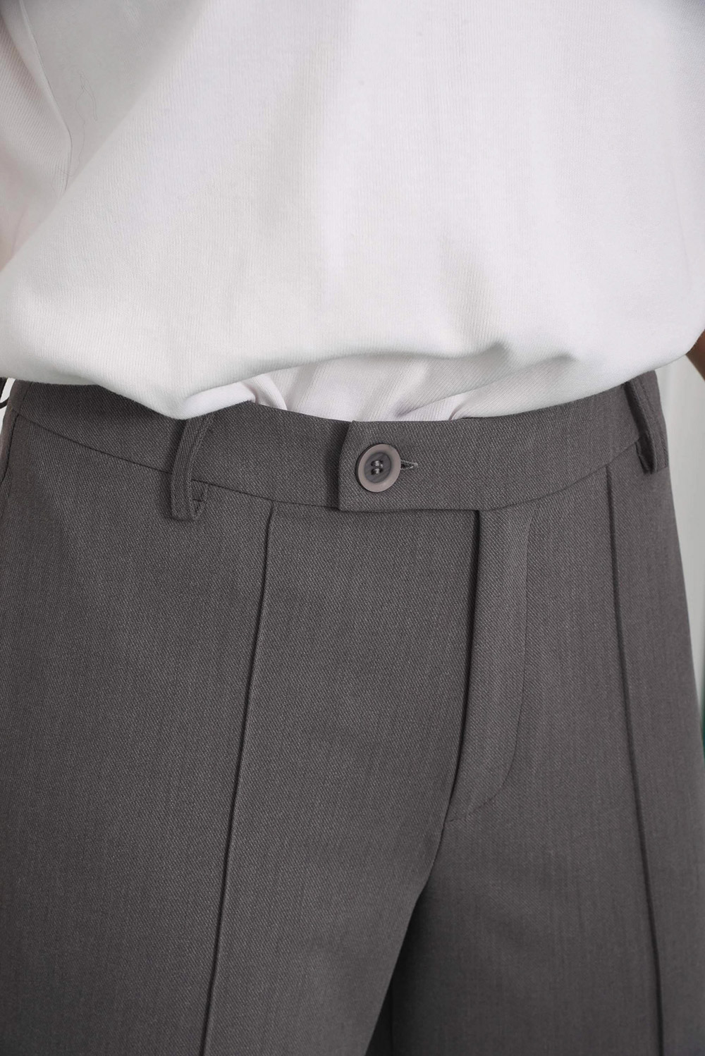 High waisted, straight wide - leg pants / Button and zip closure / Side slit pockets