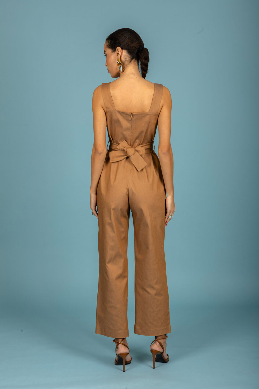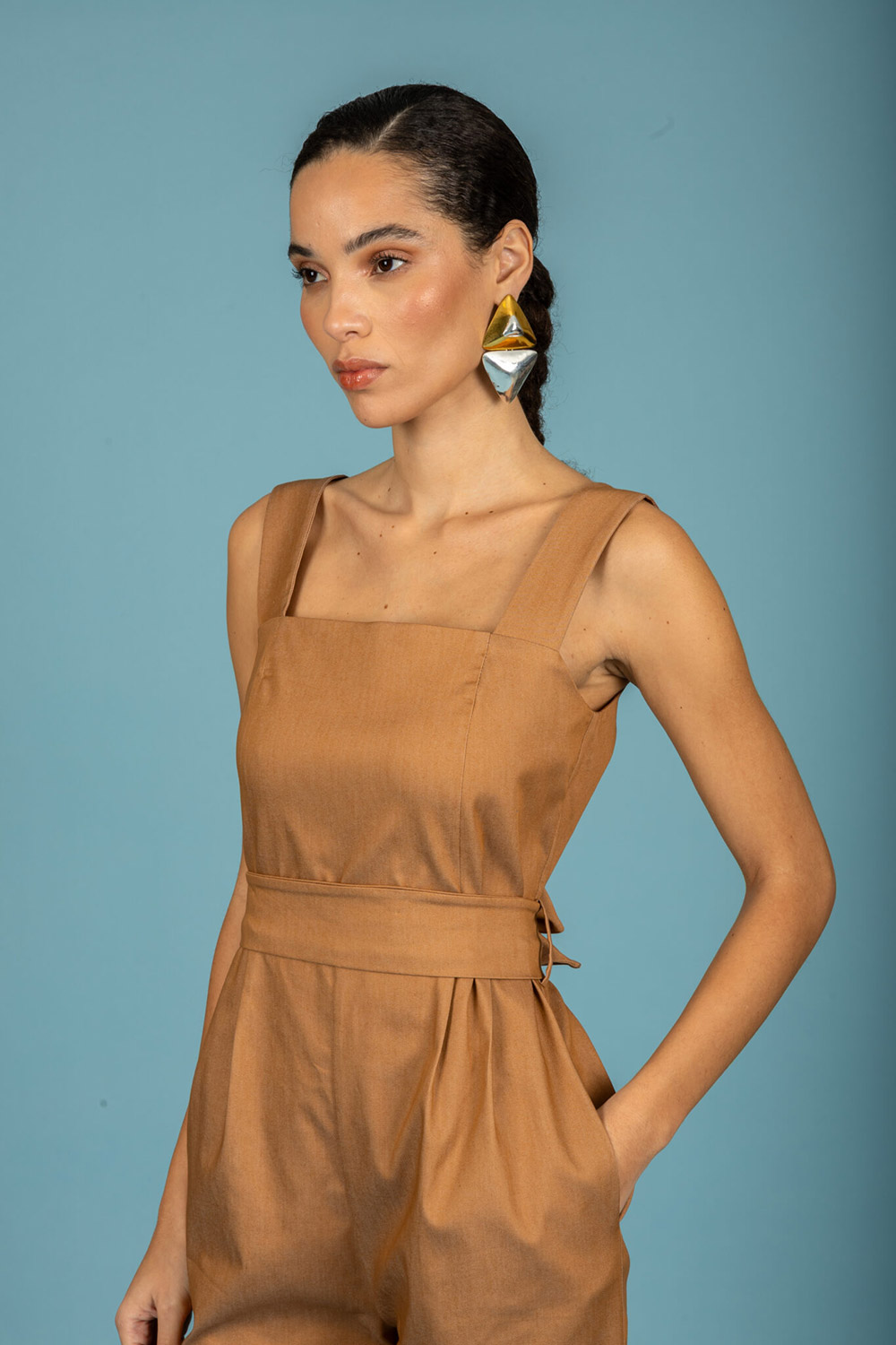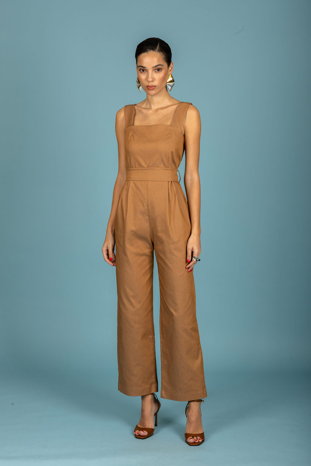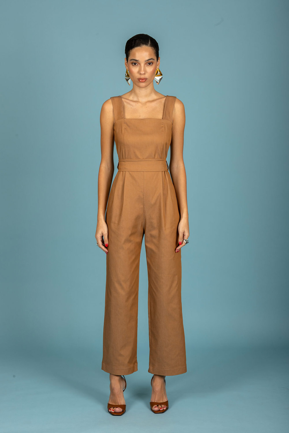 Cropped jumpsuit with thin straps / Square neckline / Belt included / Side pockets