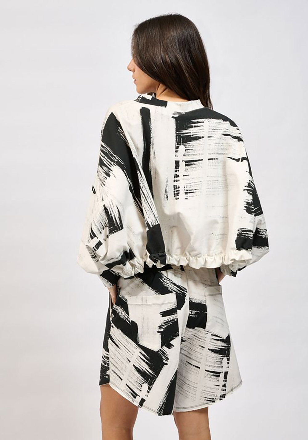 Loose fit cropped sweatshirt with a gathered waist / Loose balloon sleeves / Round neckline