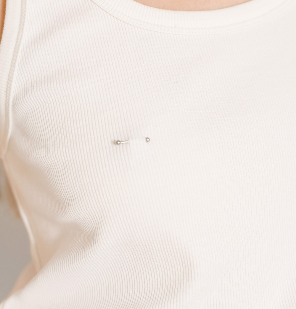 Basic, comfortable fit, sleeveless top / Soft fabric / Metal details at the chest like piercing