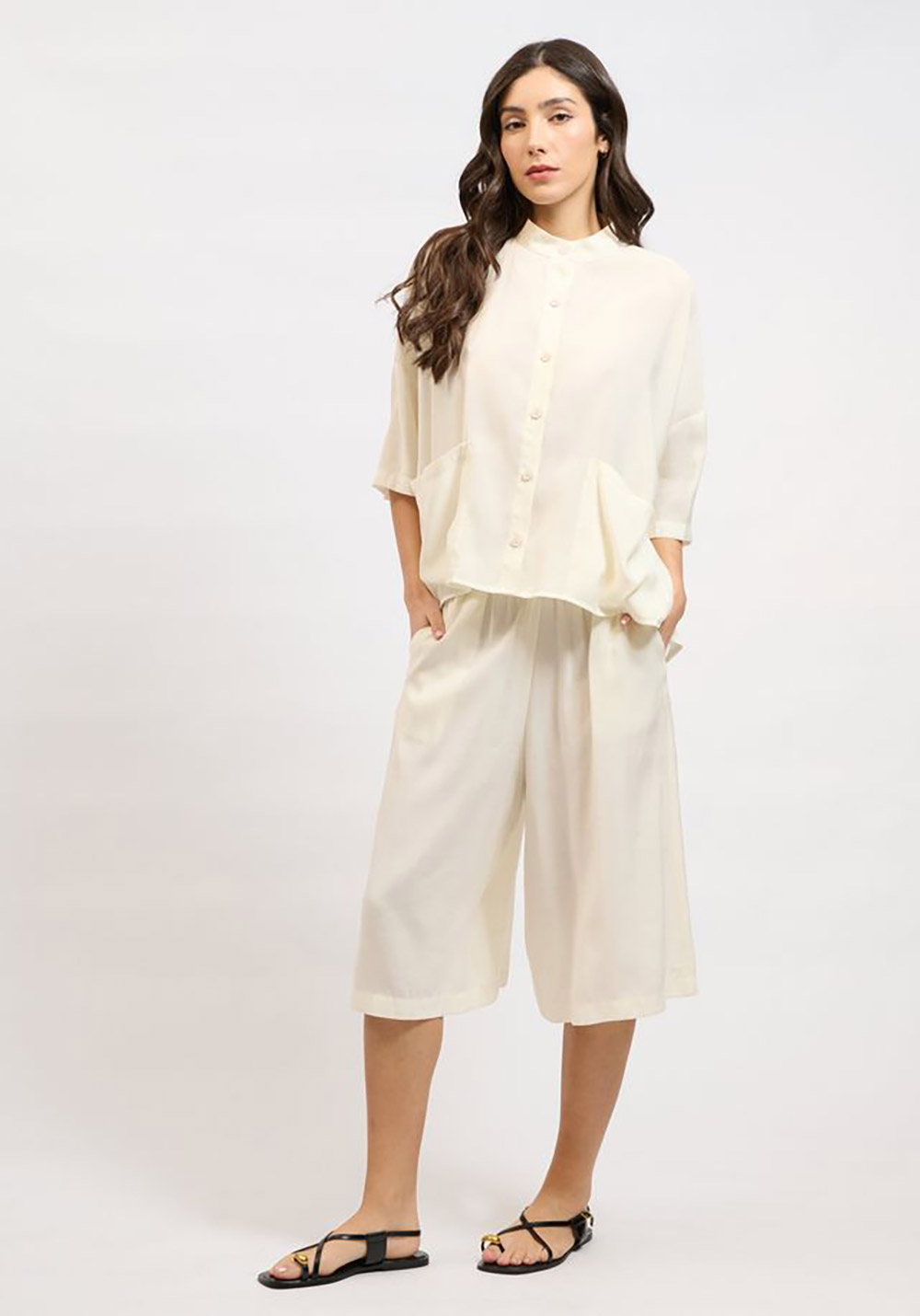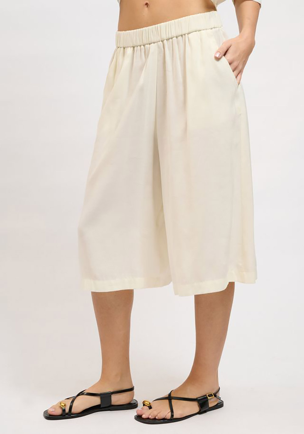 Wide leg bermuda shorts with front and back pockets / Elasticated waistband / Loose and relaxed fit