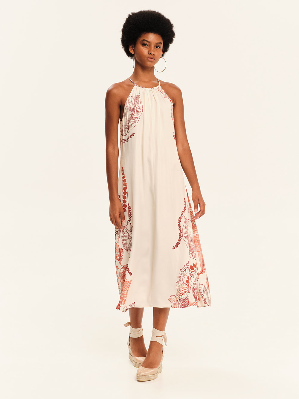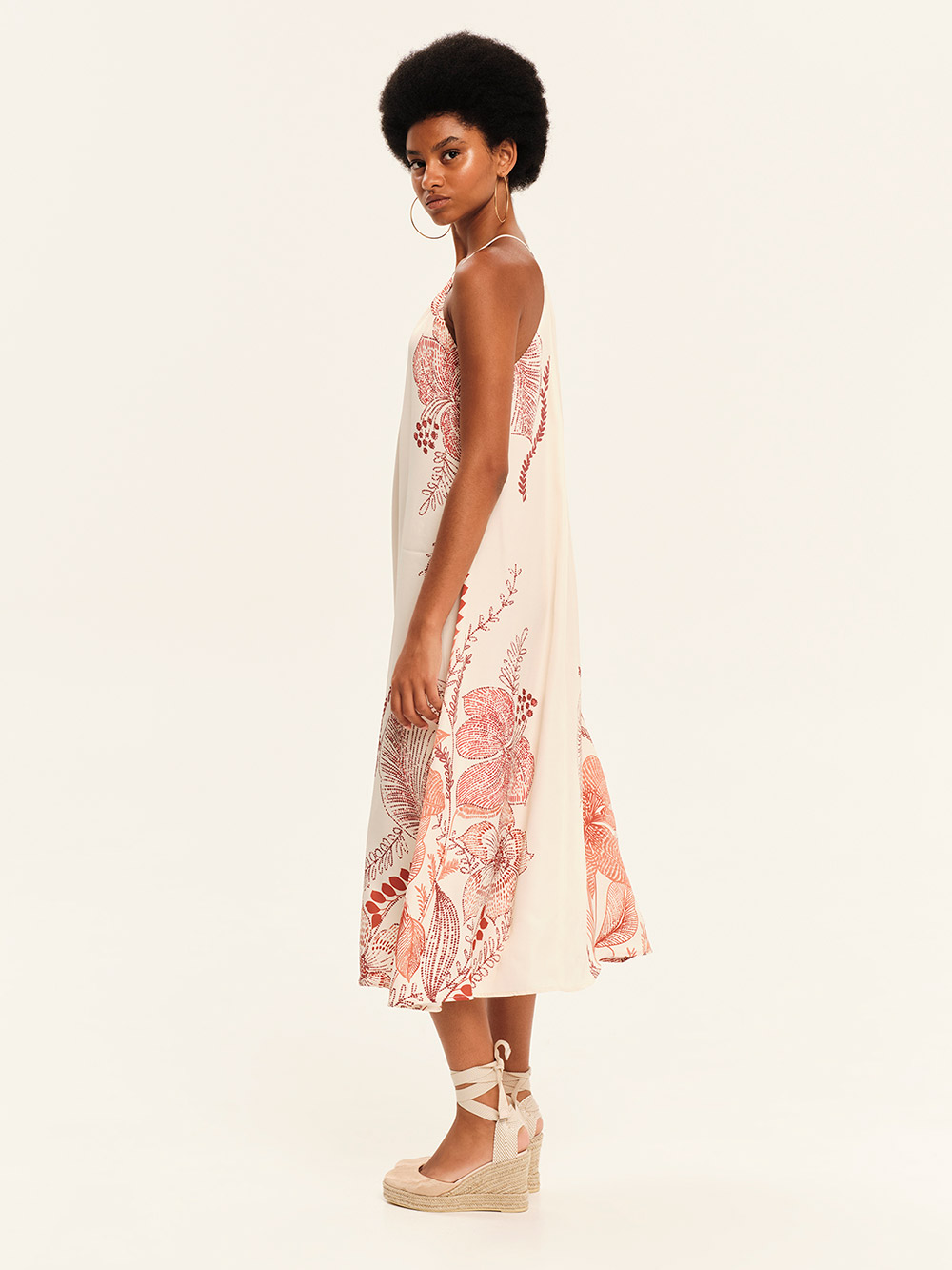 Midi, off-shoulder, floral printed dress / Silky touch
