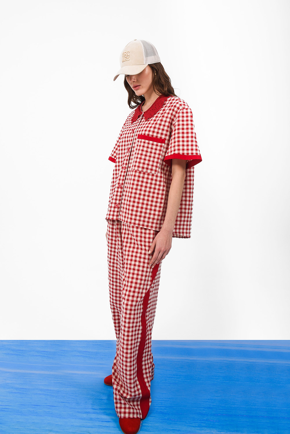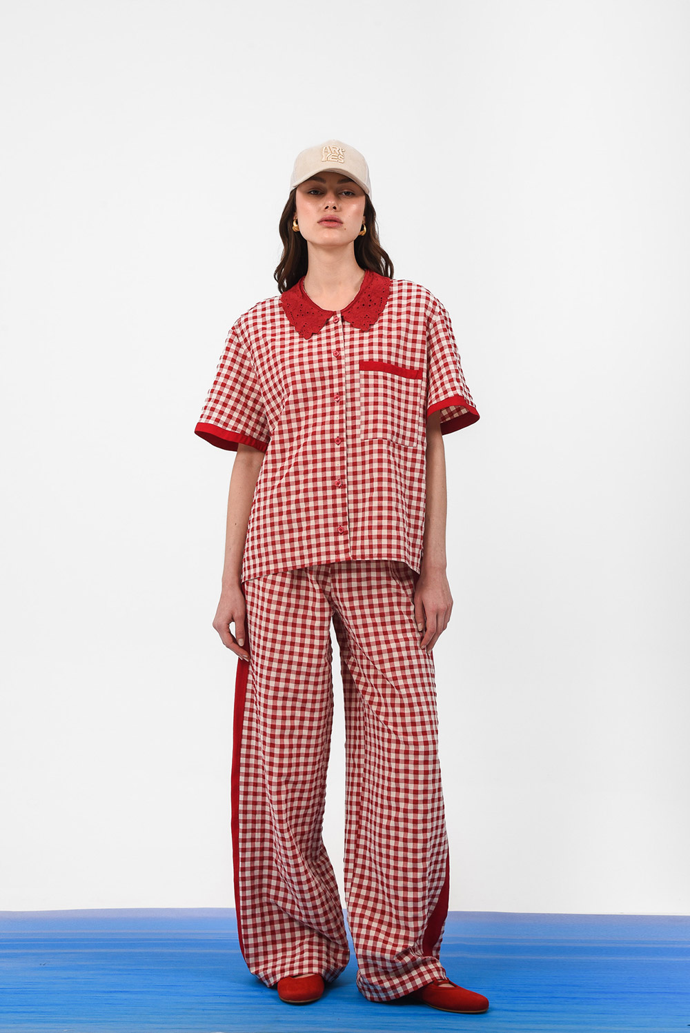 Relaxed, wide-leg checkered pants / High-rise, elastic waistband / Lightweight fit