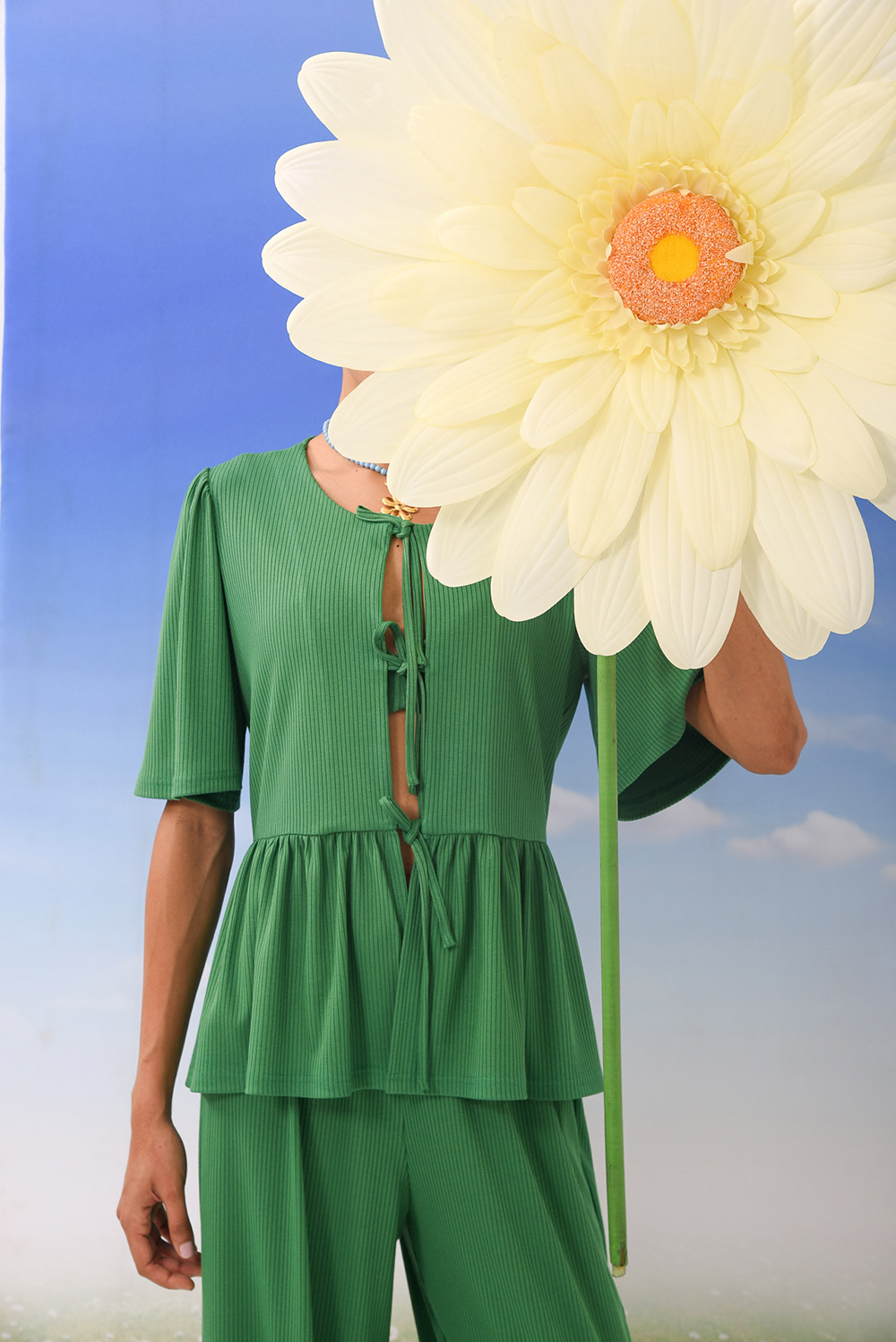 Round-neck top with front tie details and short sleeves / Relaxed fit