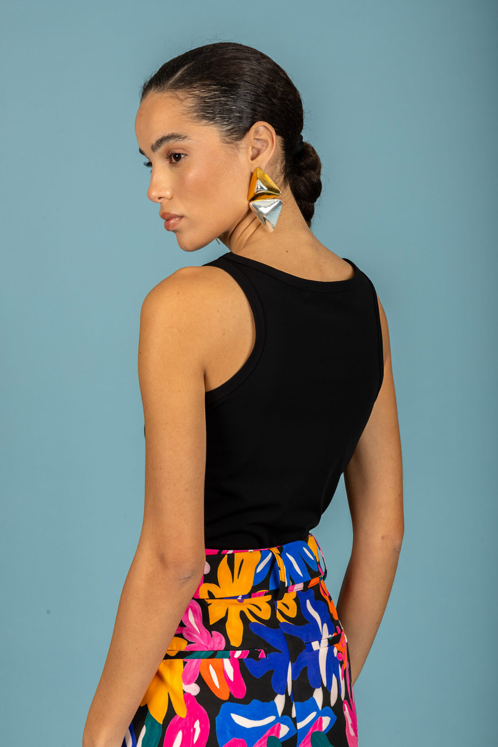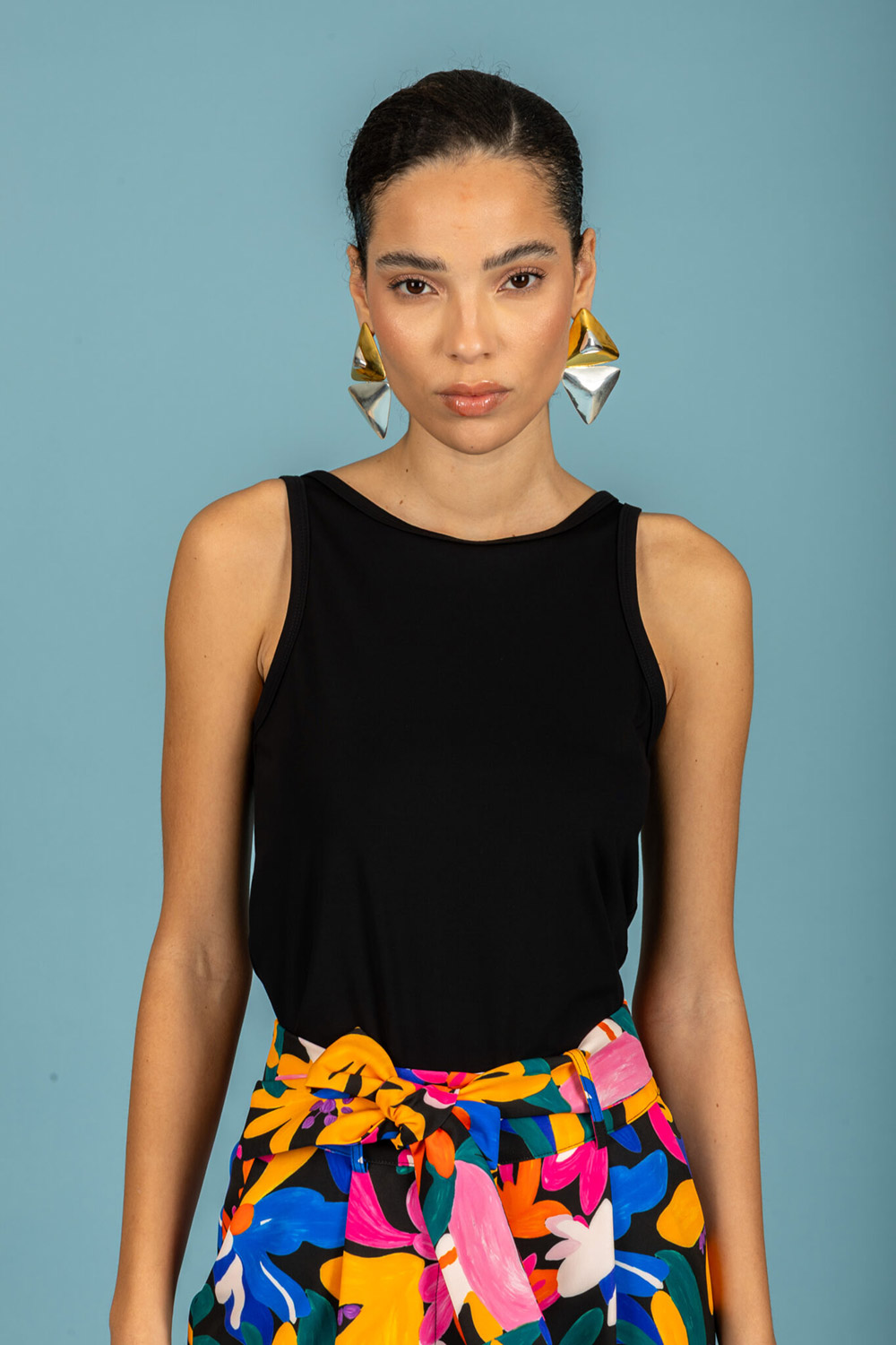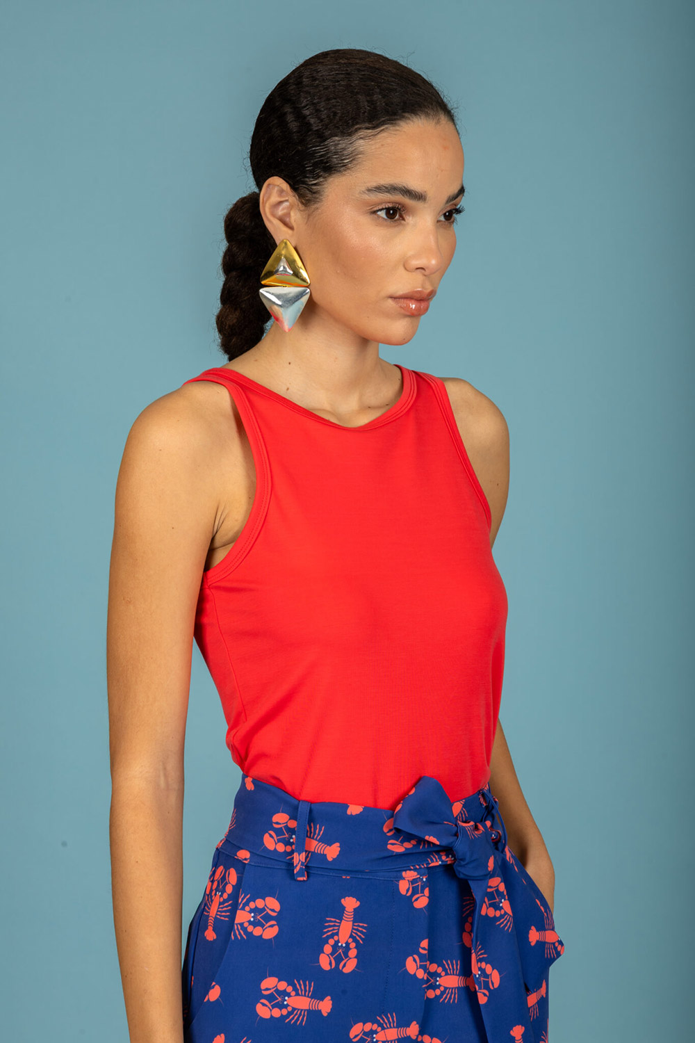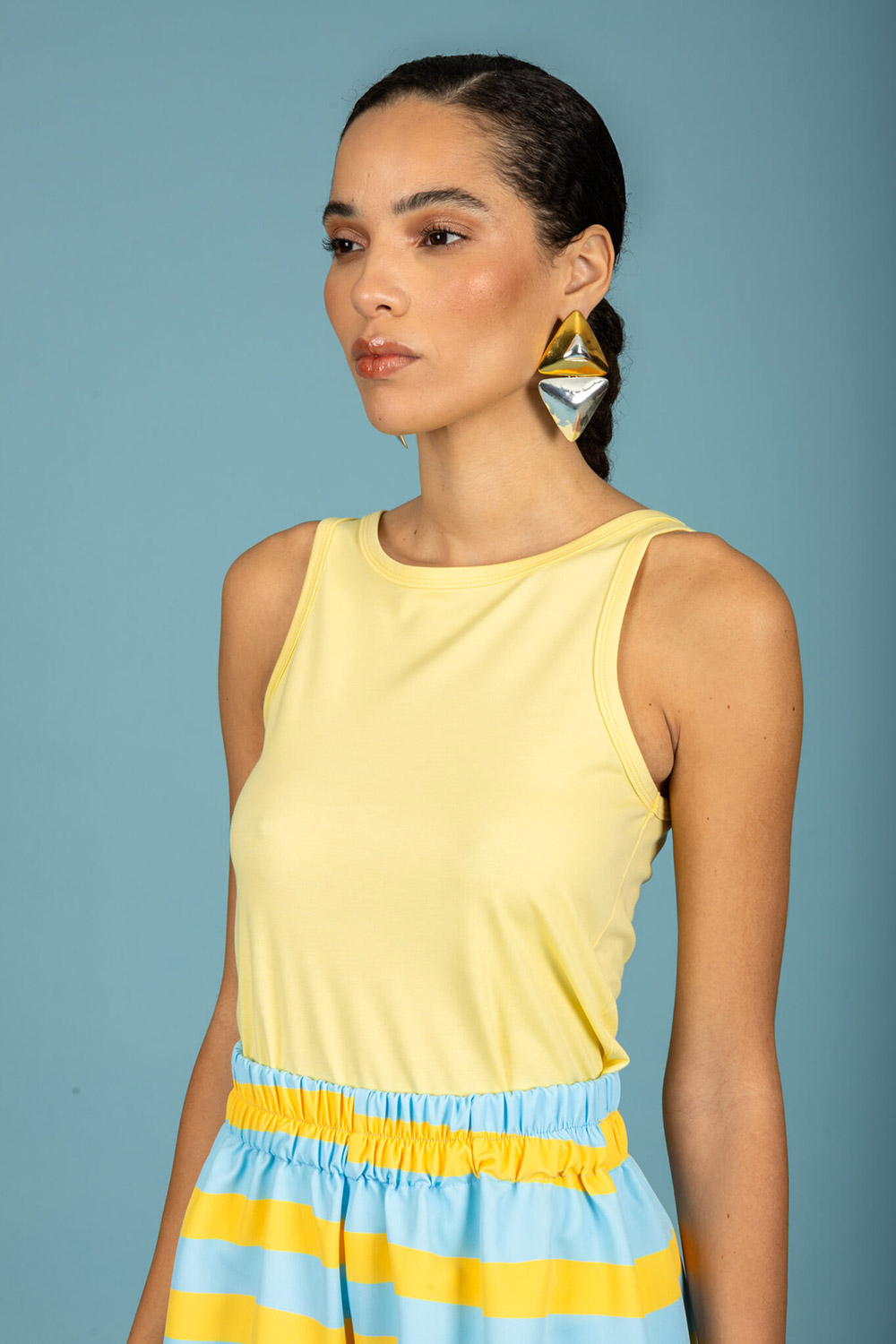 Sleeveless top / Closed neckline